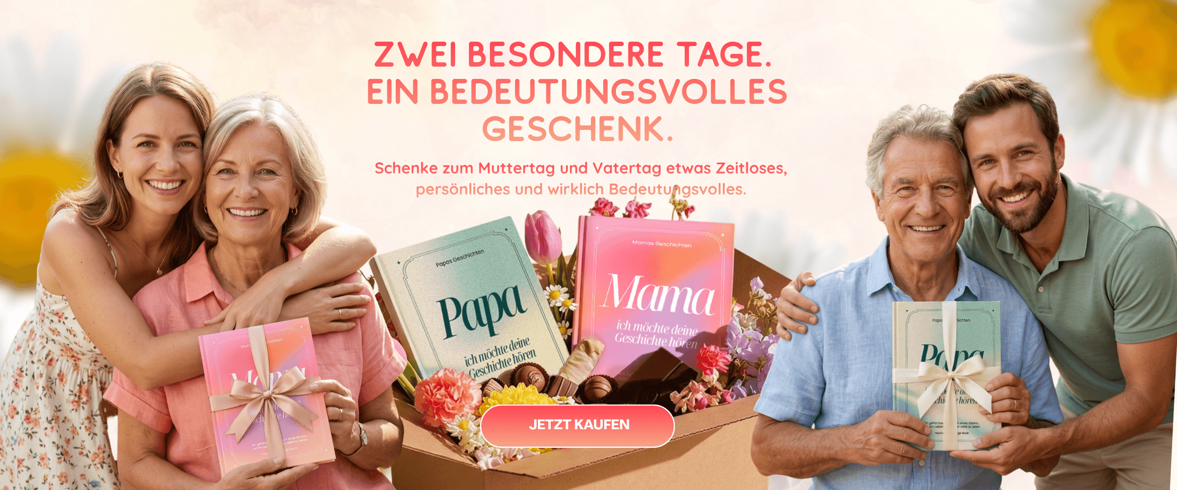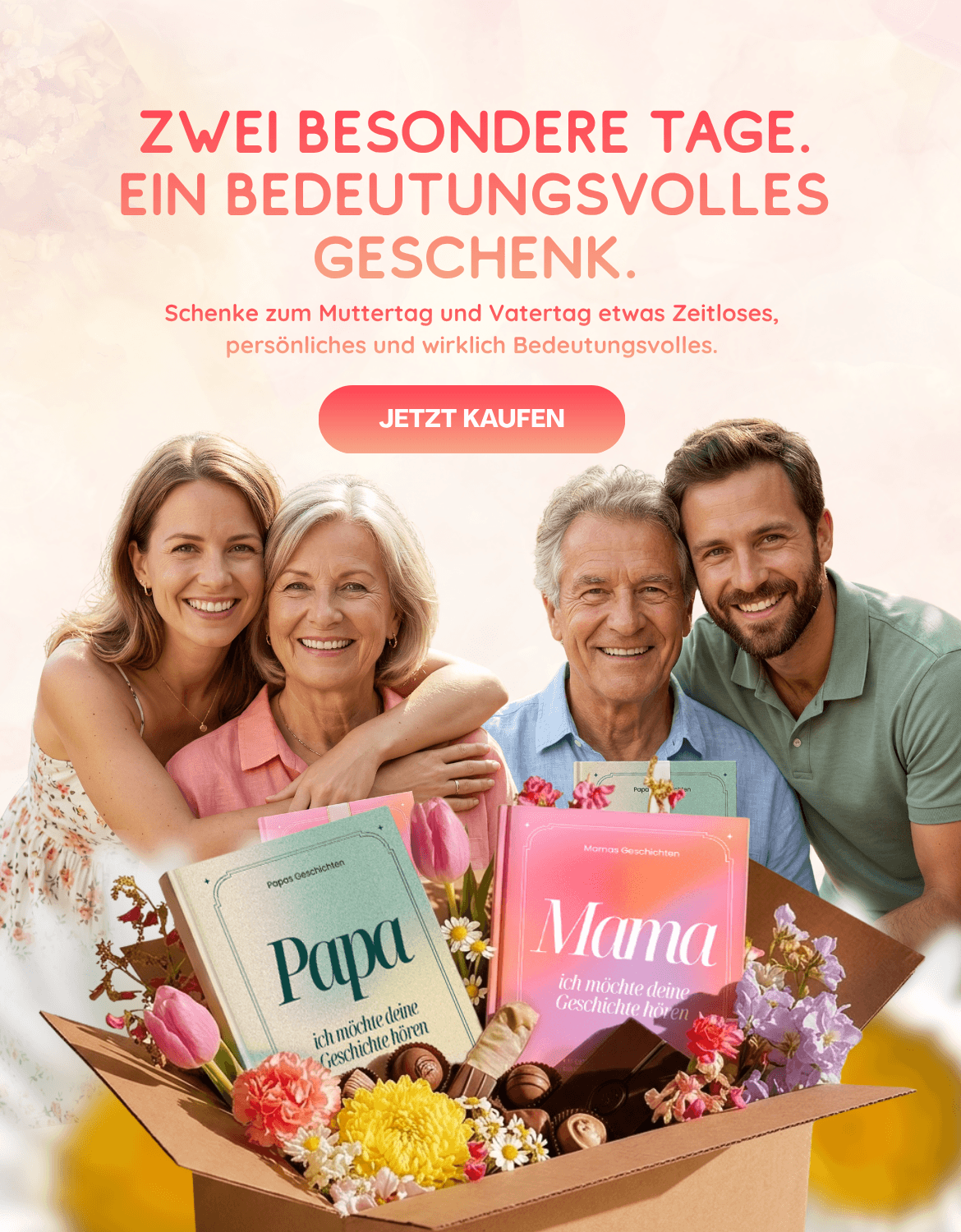 Unsere neuen Erzähl mir deine Geschichte-Bücher – das wertvollste Geschenk, um Erinnerungen, Geschichten und Lebensweisheiten deiner Eltern für immer festzuhalten.