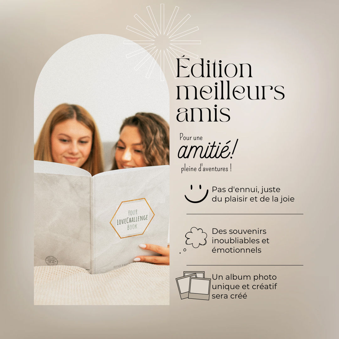 Revigorez votre amitié avec ce livre rempli de défis uniques. Renforcez votre lien en partageant de nouvelles entreprises et en préservant des moments inoubliables.