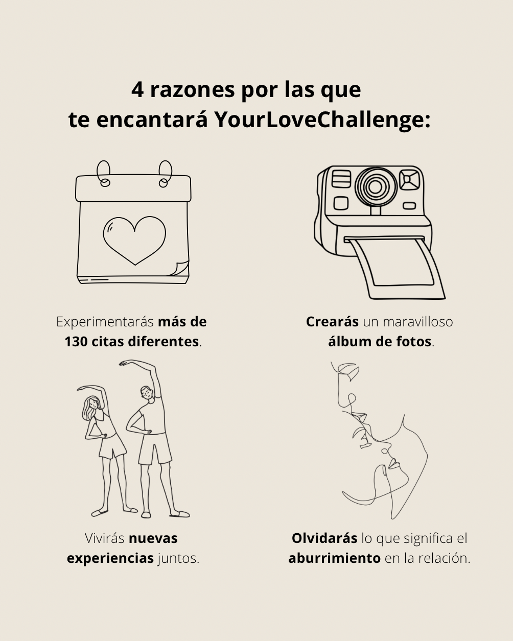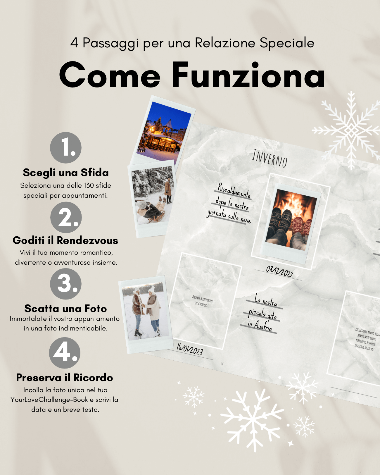 Benvenuti a YourLoveChallenge! Evelin e Daniel, i fondatori, vi offrono appuntamenti sorprendenti e ricordi indimenticabili - la ricetta segreta per la complicità che tutti desiderano. I nostri libri di sfide sono pieni di idee variegate per arricchire la vostra relazione e promuovere l'intimità. Scoprite insieme nuove sfaccettature e create il vostro libro dei ricordi 💖