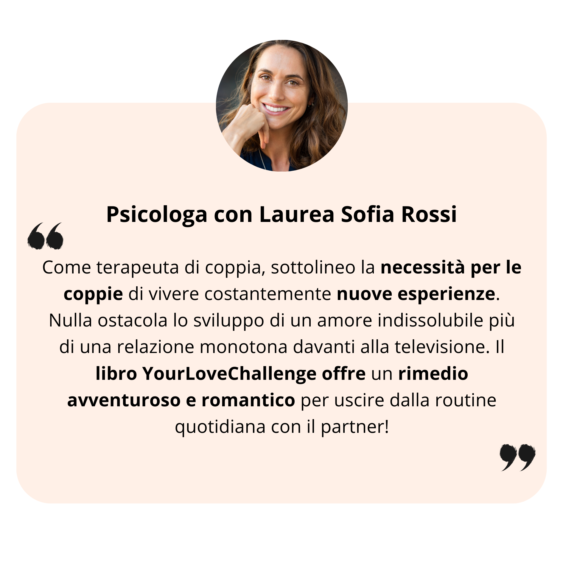 "YourLoveChallenge ha ravvivato la nostra relazione e ci ha arricchito di divertimento, idee e intimità. Assolutamente indispensabile per ogni coppia, grazie!"