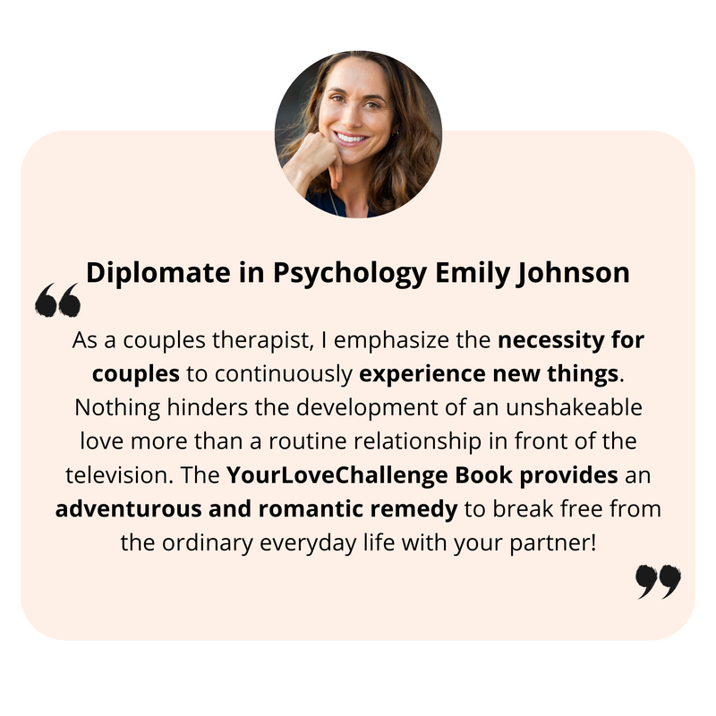 Welcome to YourLoveChallenge! Evelin and Daniel, the founders, offer you unforgettable moments – the secret recipe for enriching interpersonal relationships. Our books offer a variety of challenges for couples, friends, families, and travelers to strengthen each relationship and experience new things. Discover new horizons together & design your memory book 💖