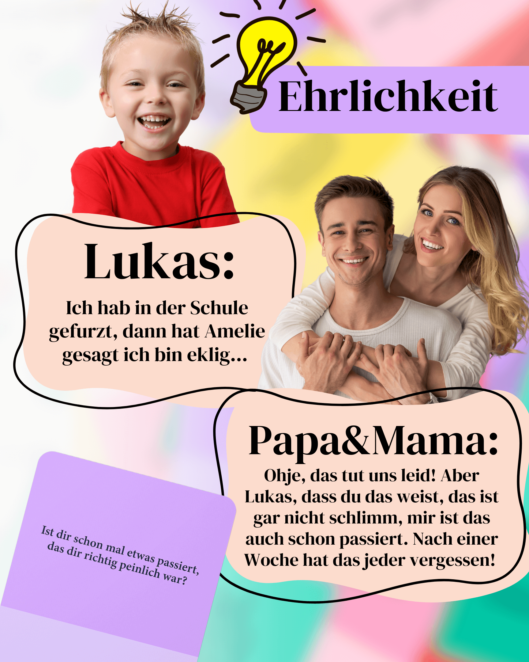 Taucht ein in eine Welt voller lustiger & spannender Fragen, die nicht nur eure Kreativität fordern, sondern auch die ganze Familie zusammenbringen. Egal, ob Groß oder Klein, dieses Frage Kartenspiel bringt neuen Schwung in eure Familienabende und sorgt für gemeinsame Erinnerungen, die ein Leben lang bleiben.