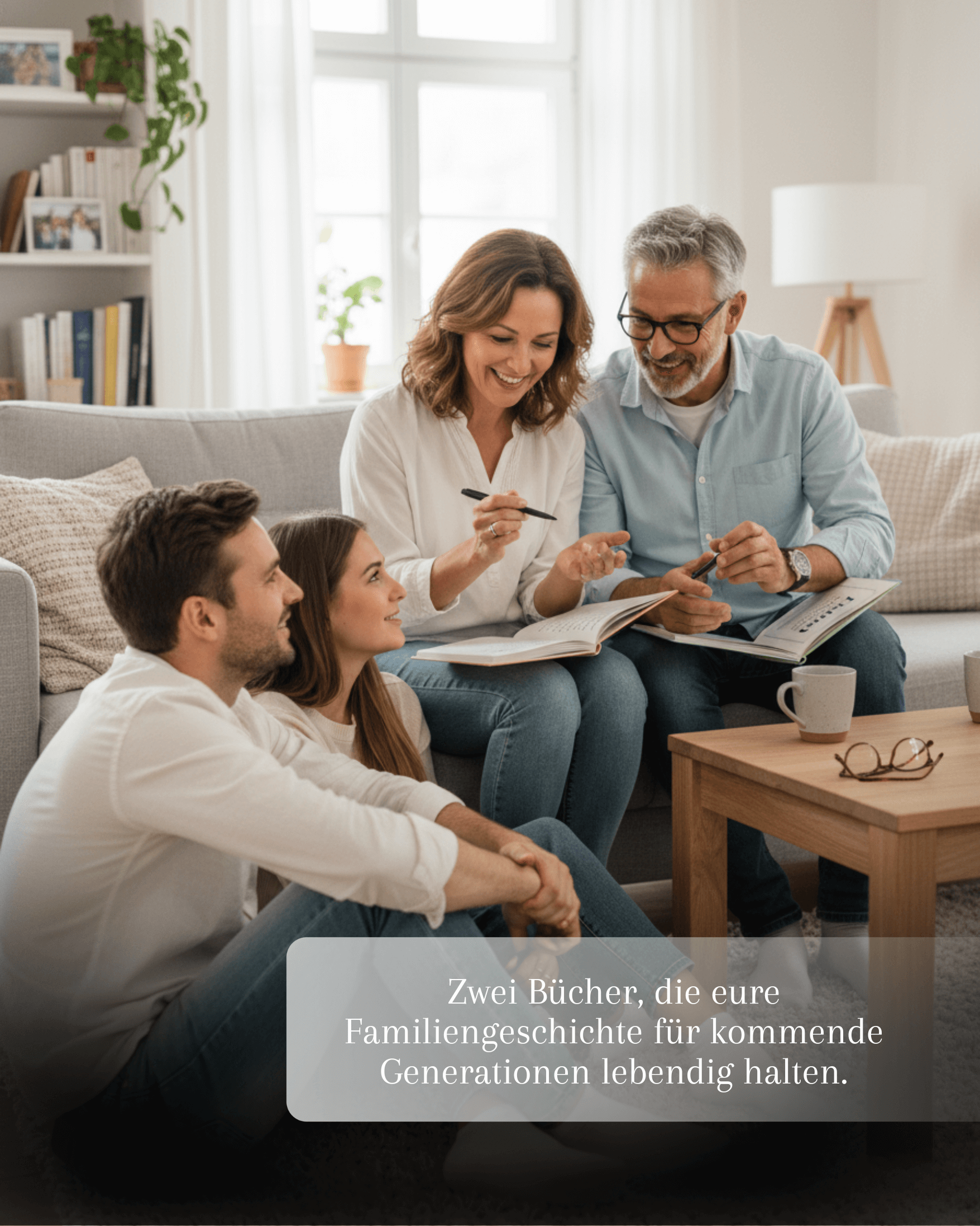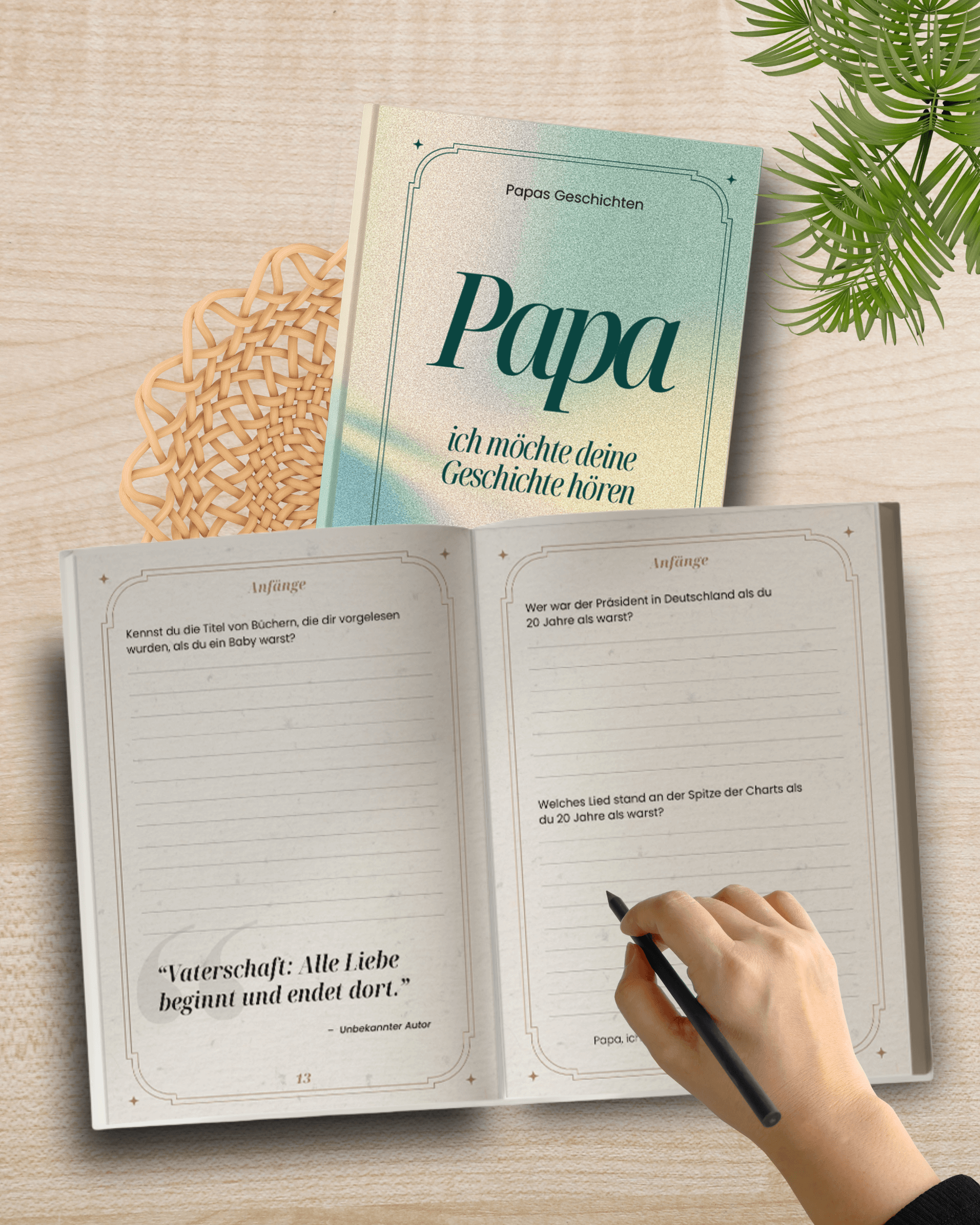 Beim Lesen von Mamas & Papas Erinnerungen entstehen Gespräche, Nähe und ein tieferes Verständnis füreinander. Jede Seite bewahrt ein Stück seiner Geschichte, das ihr zusammen neu entdecken könnt.