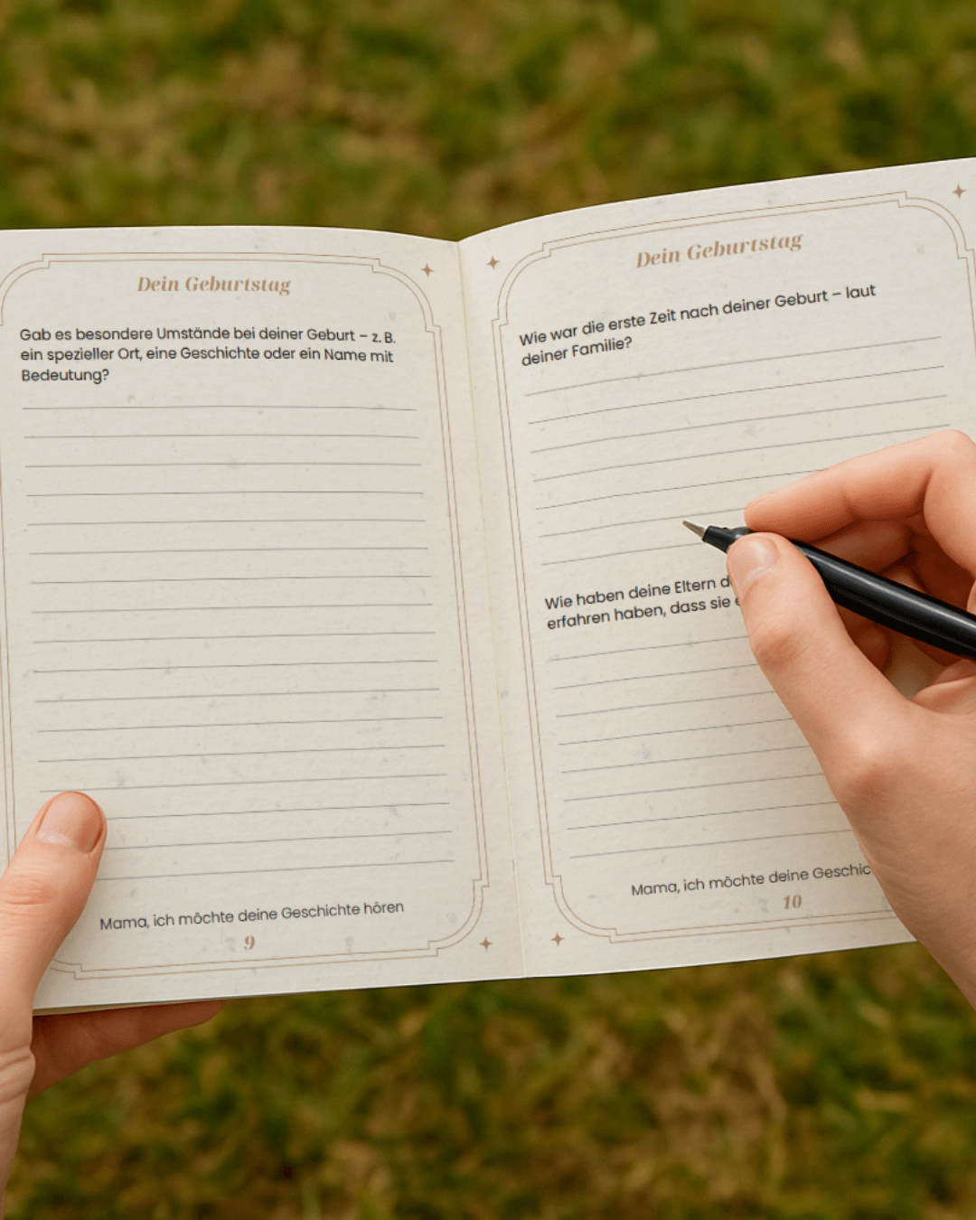 Genauso schön ist es aber auch, wenn du es für dich selbst ausfüllst – als bleibendes Geschenk für deine eigenen Kinder, damit sie deine Geschichte & Leben für immer aufbewahren können.