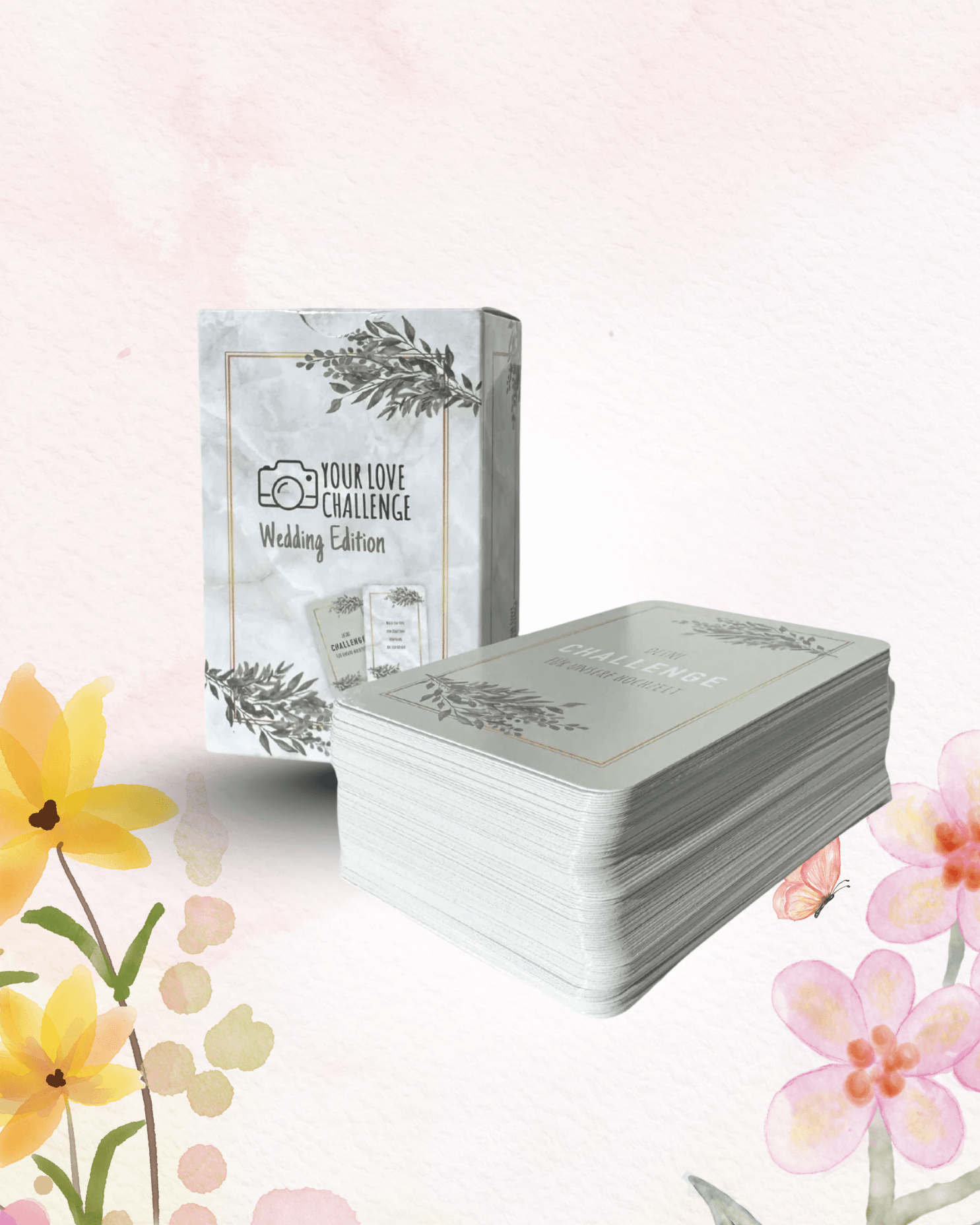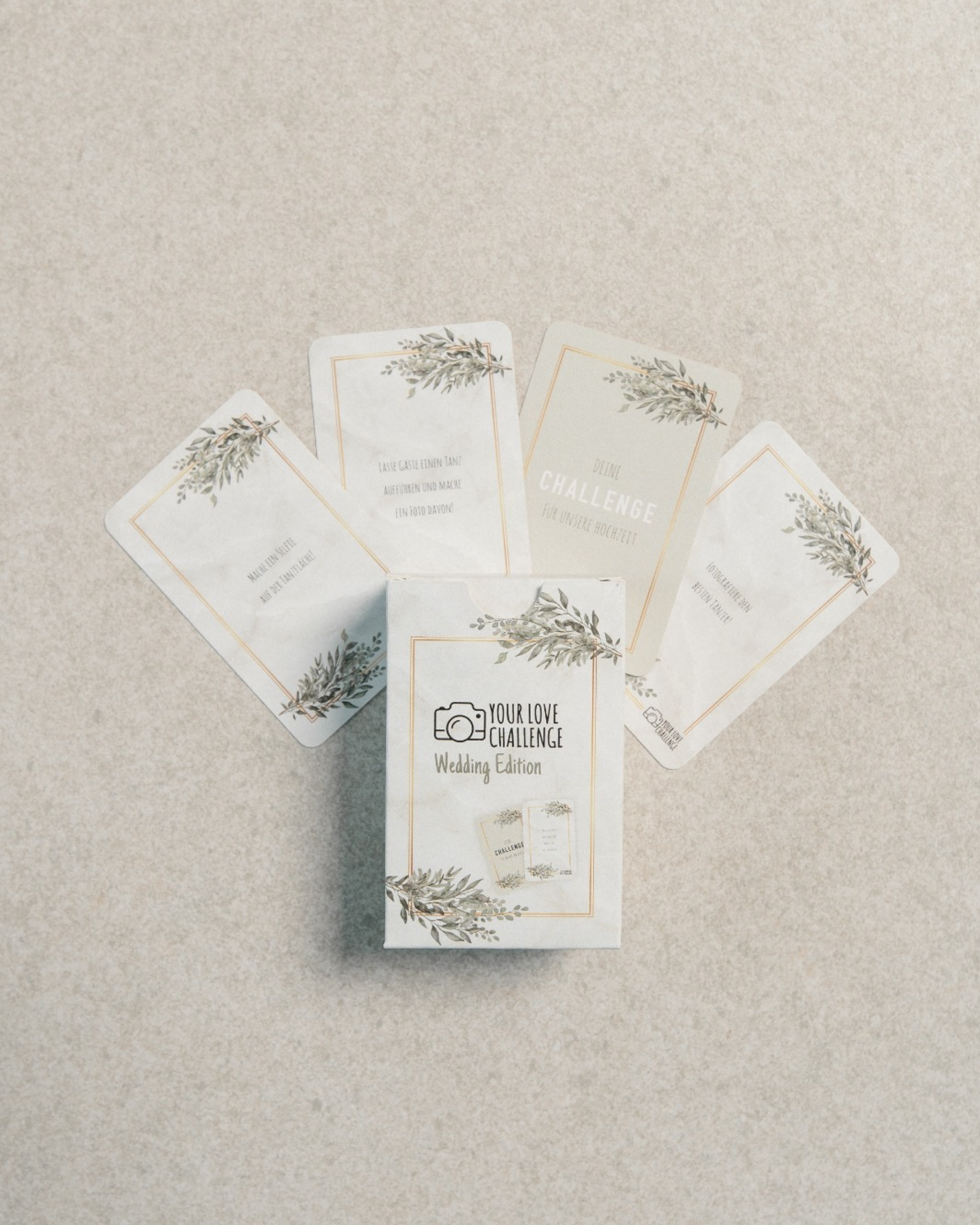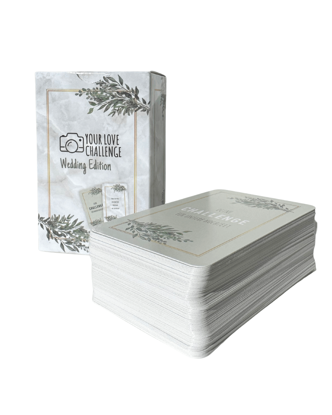 Willkommen bei YourLoveChallenge! Evelin und Daniel präsentieren die Spielkarten, die speziell dafür gestaltet wurden, die Stimmung auf jeder Hochzeit auf ein Maximum zu bringen. Unsere Mission ist es, mit kreativen Challenges die Gäste einander näherzubringen und unvergessliche Momente zu schaffen, die für immer festgehalten werden. Ob als Geschenk vom Gast oder als persönliche Investition des Brautpaars, die Challenge Karten sind ein garantierter Hit für eine unvergessliche Hochzeit. Genießt die Zeit mit den engsten, denn diesen Tag gibt es nur EINMAL IM LEBEN! 💖