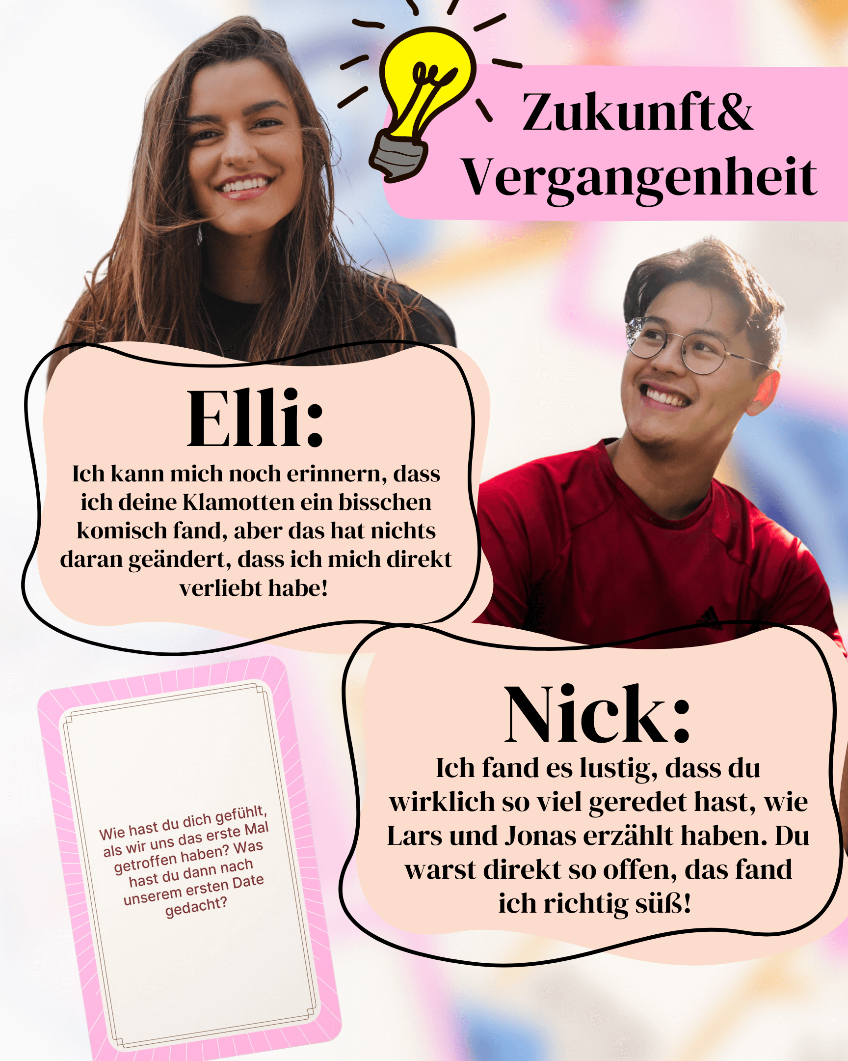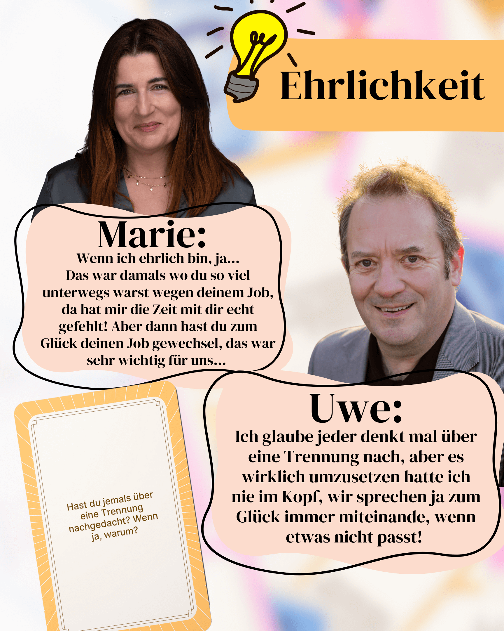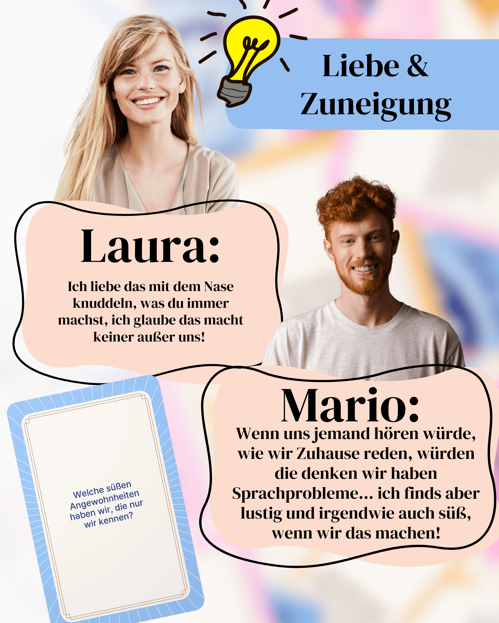 - Tiefgründige Fragen: Lernt mehr über die Wünsche und Träume eures Partners.