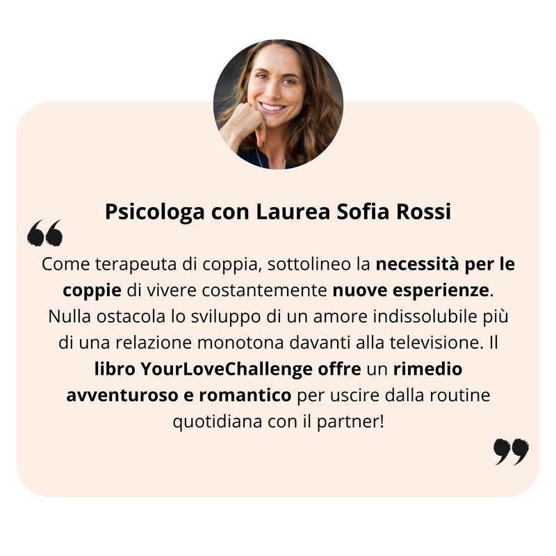 Benvenuti a YourLoveChallenge! Evelin e Daniel, i fondatori, vi offrono di vivere momenti indimenticabili – la ricetta segreta per relazioni interpersonali arricchenti. I nostri libri offrono una varietà di sfide per coppie, amici, famiglie e viaggiatori, per rafforzare ogni relazione e vivere nuove esperienze. Scoprite insieme nuove sfaccettature e create il vostro libro dei ricordi 💖