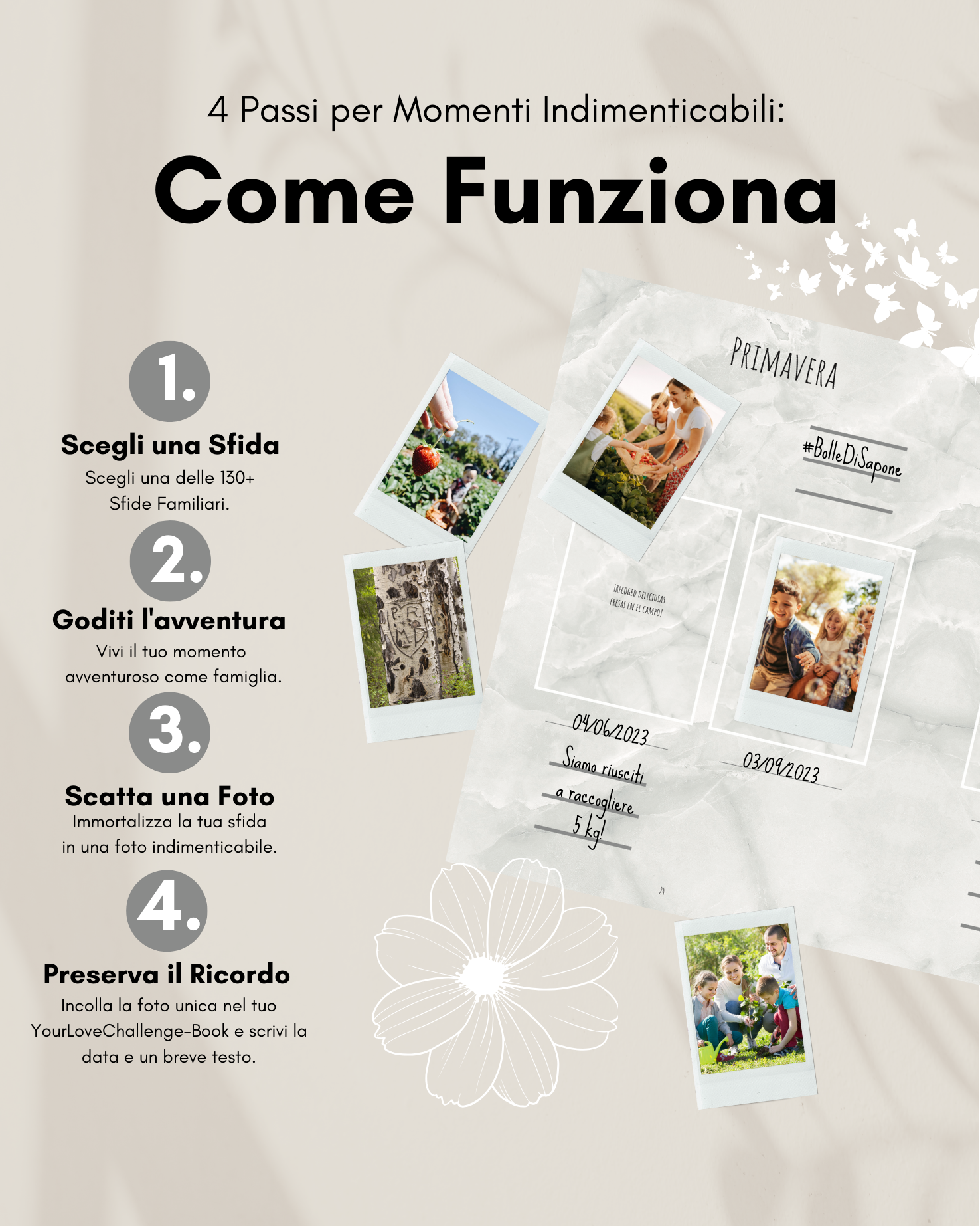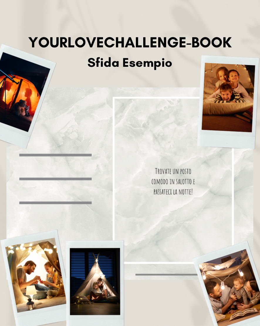 Benvenuti a YourLoveChallenge! Evelin e Daniel, i fondatori, vi offrono sfide sorprendenti e ricordi indimenticabili – la ricetta segreta per la vita familiare che tutti desiderano. I nostri libri di sfide sono pieni di idee variegate per arricchire la vostra vita familiare e promuovere esperienze condivise. Create insieme il vostro libro di ricordi e scoprite nuove sfaccettature della vostra famiglia. 💖