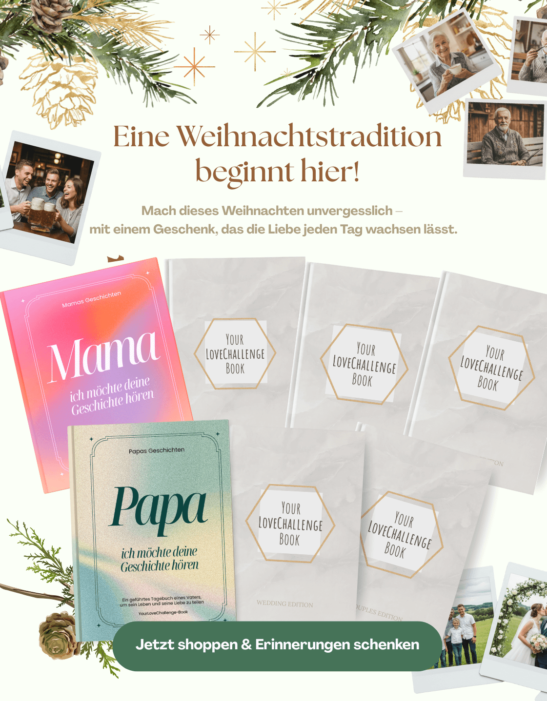 Willkommen bei YourLoveChallenge! Evelin und Daniel, die Gründer, bieten euch unvergessliche Momente zu erleben – das Geheimrezept für bereichernde zwischenmenschliche Beziehungen. Unsere Bücher bieten eine Vielzahl von Challenges für Paare, Freunde, Familien & Reisende, um jede Beziehung zu stärken und neues zu erleben. Entdeckt gemeinsam neue Facetten & gestaltet euer Erinnerungsbuch💖